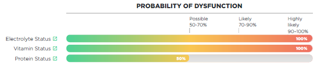 We can look at the relative decrease in these biomarkers to determine a patient’s Electrolyte Status, which we calculate in the Optimal DX application and report on the Functional Health Report: