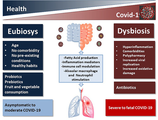 Source: Donati Zeppa, Sabrina et al. “Gut Microbiota Status in COVID-19: An Unrecognized Player?.” Frontiers in cellular and infection microbiology vol. 10 576551. 26 Nov. 2020, doi:10.3389/fcimb.2020.576551. This is an open-access article distributed under the terms of the Creative Commons Attribution License (CC BY). The use, distribution or reproduction in other forums is permitted, provided the original author(s) and the copyright owner(s) are credited and that the original publication in this journal is cited, in accordance with accepted academic practice. No use, distribution or reproduction is permitted which does not comply with these terms.