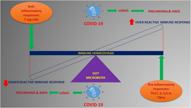 A healthy gut microbiota/microbiome will impart protective immunity for its host, help regulate inflammation, and have direct effects on the lungs, a primary target of SARS-CoV-2. The lungs have a unique microbiota of their own, and bidirectional communication is facilitated via the “gut-lung axis.” Preliminary research suggests that the pathogenesis of sepsis and ARDS may be directly related to the gut microbiota.[iv]