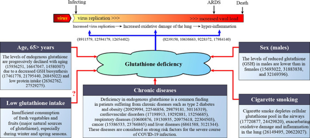 Increased oxidative stress, impaired redox homeostasis, inflammation, antioxidant and glutathione insufficiency contribute to chronic comorbidities (e.g. diabetes, cardiovascular disease, respiratory disease) and also appear to increase the severity of COVID-19.